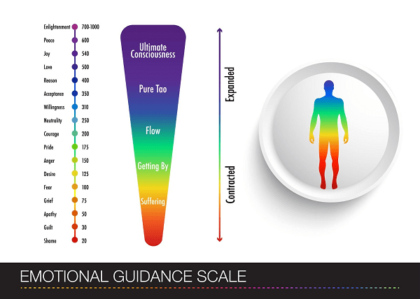 - Използвай Разума (400), за да укротиш емоциите – Когато емоциите по 200 те залеят, включи логиката. Обективността е високочестотна. Използвай факти. Вместо „Никой на ме обича“, кажи „В момента се чувствам самотен, но това е временна биохимична реакция“. Интелектуалното разбиране на емоцията намалява нейната сила.